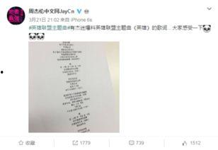周杰伦,这个名字对于很多人来说,不仅仅是一个歌手,更是一种情怀。他的音乐,陪伴了我们无数个日夜,成为了我们青春的回忆。而今天,我要给大家带来一个重磅消息——周杰伦最新歌曲的歌词曝光了!让我们一起揭开这个神秘的面纱,感受周杰伦带给我们的惊喜吧!